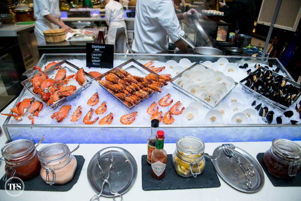 In a box-type set-up, The Deli Station combined the Japanese station, where sushi and sashimi can be found, charcuteries, patés and cheese, salads, bread varieties and terrines, and chilled seafood.