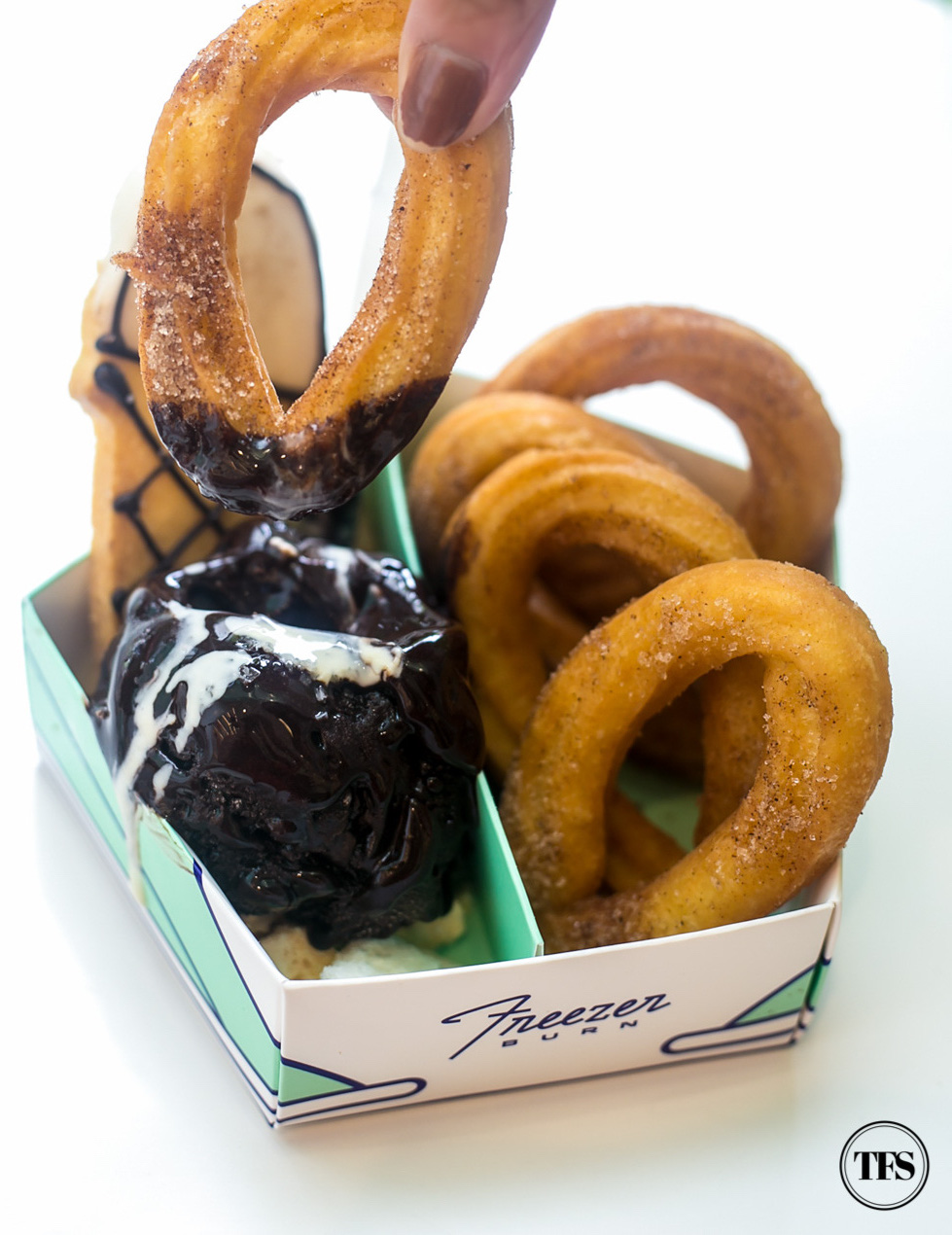 Ola! it’s my favorite from Freezer Burn! Thick and rich Dark chocolate ice cream, just imagine how the dark choco of Churros dip tastes like, served with 5 pcs. of hot churros. And to add fun, a serving of milk on an injection syringe. All in all, it’s uhh-mazing!